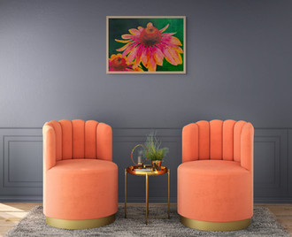 In diesem Bild war ich fasziniert vom energetische Leuchten der Blüte. Ich habe meine Farben um Neonfarben-Akzente ergänzt. Die Farbe wurde in mehreren Schichten mit Spachteln aufgetragen.